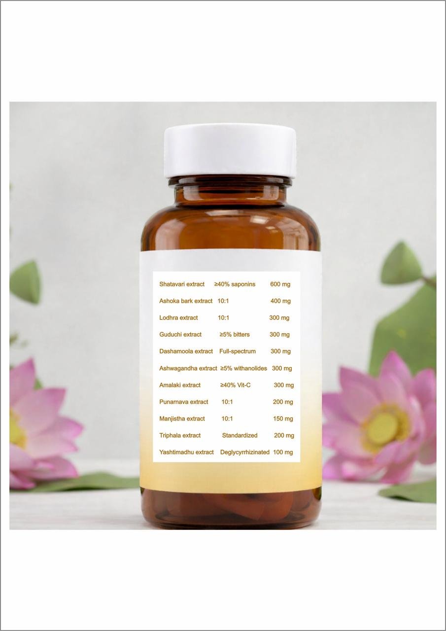 This natural formulation is designed to nurture hormonal balance, menstrual comfort, emotional calm, and inner vitality. Each ingredient is carefully selected for its traditional role in supporting women’s health—helping the body adapt to stress, regulate cycles naturally, and restore energy from within. There are no harsh chemicals or artificial additives, only clean, plant-based ingredients that respect the body’s natural rhythm.